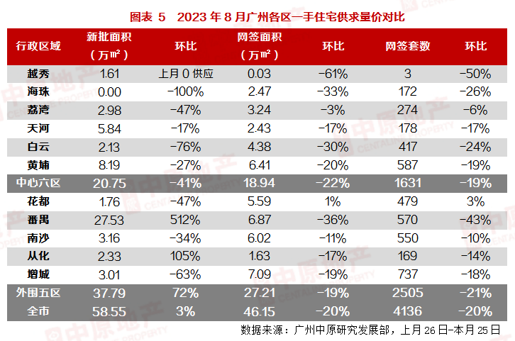 8月,广州住宅新批供应5403套(58.55万㎡),供应面积比7月增加3%;
