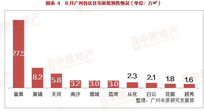 8月广州整体市场表现淡静,番禺区域市场热度相对较高。