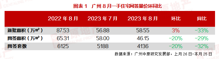 8月广州新房网签4136宗,环比下跌20%,比去年同期成交下跌32%。