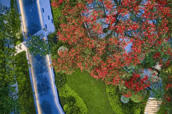 作为业内知名的“龙湖种树有限公司”,龙湖别出心裁地将植物从低到高分为5大重13小类,组成层次更丰富、更接近自然的景观组团;成林、成片种植同一树种的纯林营造法较大程度凸显树叶的颜色、花朵的色香味等;运用全冠移植的“技术活”,让业主入住即享成熟园林;利用360°造景法来找到树木枝叶伸展出的较佳姿态等等。