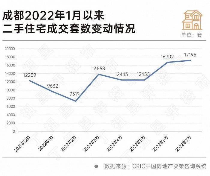 具体到二手房成交套数来看,2022年3月也是成都二手住宅成交套数明显提升的月份,达13858套,在经过4、5月的回调后,2022年7月成都二手成交量冲高至1.7万套,已达到近10年月度较高水平。
