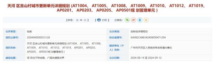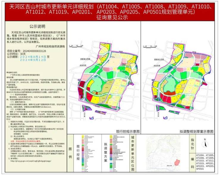 日前,天河区吉山村城市更新单元详细规划 (AT1004、AT1005、 AT1008、AT1009、AT1010、AT1012、AT1019、AP0201、AP0203、 AP0205、AP0501规划管理单元)批前公示,引人关注。