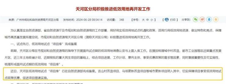 6月,天河区低效用地试点“项目库”在自然资源部完成备案。