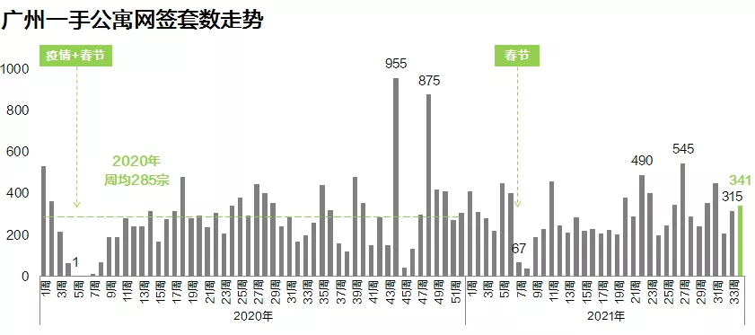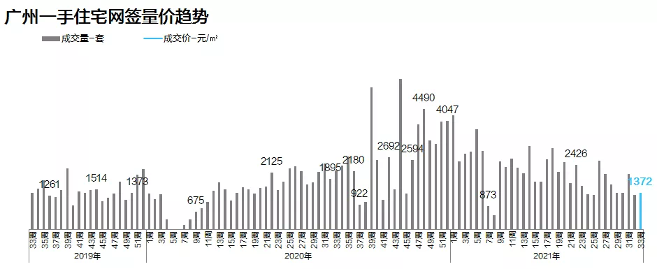 本周全市一手住宅网签1372宗,环比下跌5.2%。市场自7月中旬起便维持1500宗以下低位,成交有待推新刺激。由于网签存在一定延后性,本周成交集中反映了8月中上旬行情;而从本周起,开发商推货力度明显加速,如黄埔星汇城、时代天韵,南沙湾区金融城、湾璟壹号,增城龙湾壹号、碧桂园星禧等项目集中推货入市,成交氛围亦较7月底8月初明显改善,预计未来两周成交将有所回温。小研君认为,虽然今年政策环境大不如去年同期,但开发商的业绩目标并未放松,加上高层严管“三道红线”,加上落实集中供地后,开发商需要手头上回笼更多资金进行土地投拓,预计传统旺季“金九银十”开发商依旧会保持较高热情度,但对于买家而言,当前房贷环境依然趋紧,市场观望情绪仍相对较浓。
