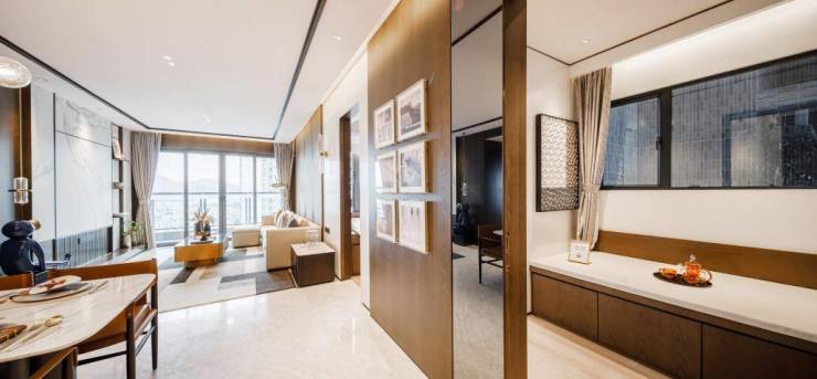 在精装细节上,新世界云耀将关怀融入日常的每一个角落。玄关处的全身镜,让家人出门前整理仪容更为便捷;卫生间镜柜的合理收纳设计,让各类用品各归其位,保持整洁;厨房的L型操作布局与宽适台面,即使多人同时下厨也能从容转身、互不干扰。全屋配备的松下新风系统,持续引入新鲜空气,守护家人呼吸健康;LifeSmart云起智能家居系统则实现灯光、空调、窗帘的一键掌控,让生活更从容。从博世厨房三件套到大金空调,每一处配置都着眼于未来生活的舒适与安心。