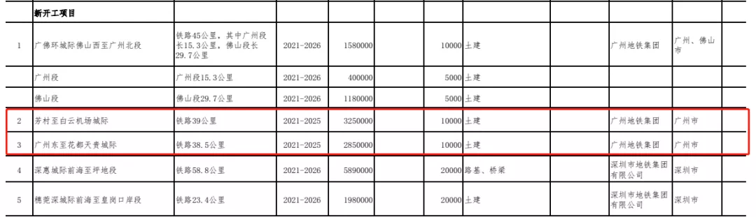 3月31日,广东省发展改革委发布了《广东省2021年重点建设项目计划》。其中,芳村至白云机场城际(广州地铁二十二号线北延线)以及广州东至花都天贵城际(广州地铁十八号线北延线)作为新开工项目,排名前列次被列入省的重点建设项目计划。官方文件也排名前列次透露上述两段线路的建设时间表:建设起止年限为2021年-2025年。
