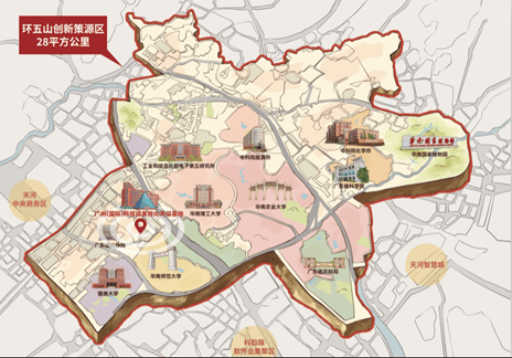环五山创新策源区28平方公里范围内,汇集了暨南大学、华南理工大学(五山校区)、华南农业大学、华南师范大学等多所高校,拥有5家科研院所、20多家专业园区、超400家高新技术企业和国家重点实验室;片区涉及旧村主要包括凌塘村及岑村两大旧村。