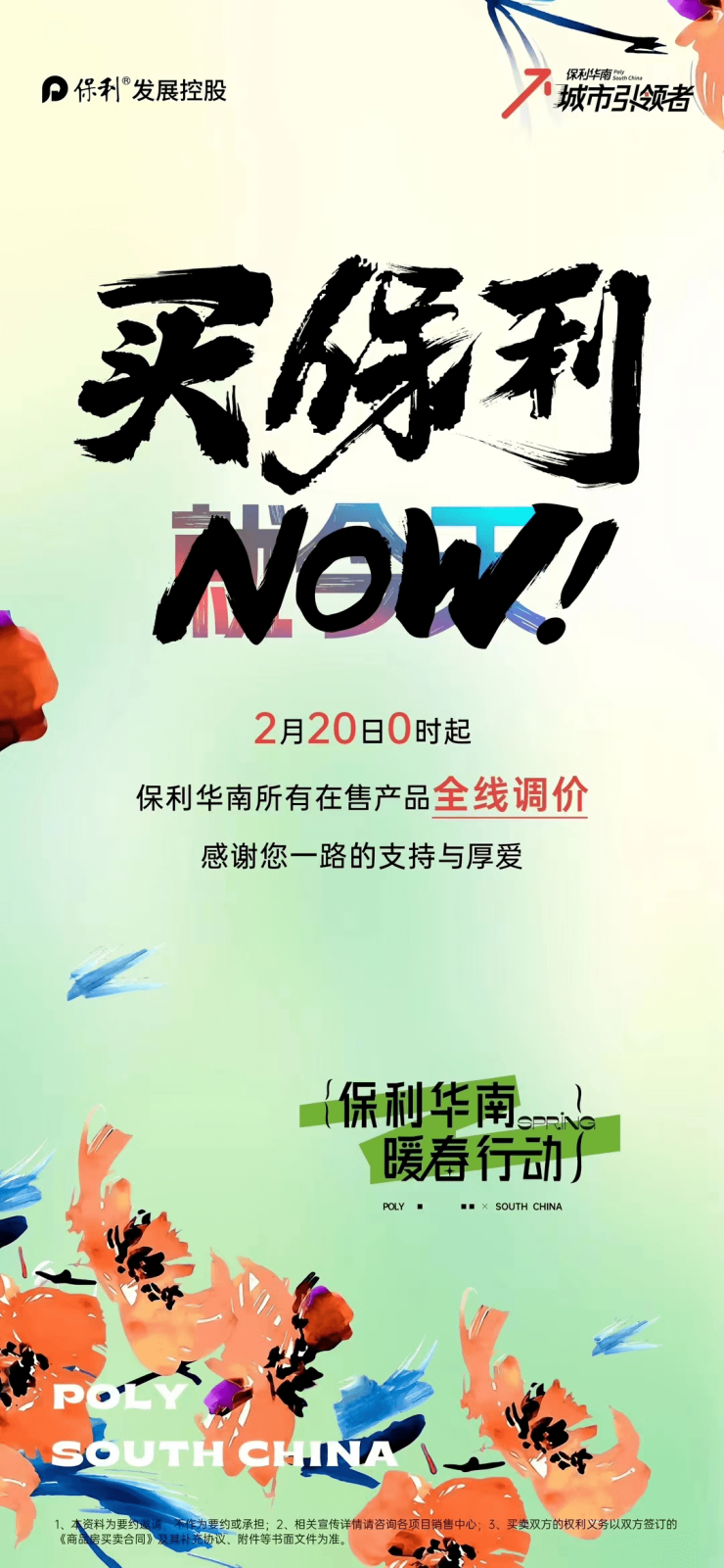 在此背景下,多个销量不错的楼盘,已经直接发海报说要“涨价”了。如保利华南所有在售产品全线调价、越秀和樾府全新产品涨价6%、卓越招商臻珑府价格拟上调2%、中海保利朗悦全新产品价格上调2%……(具体内容可拉到文末查看相应的海报。)
