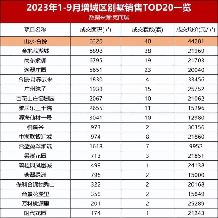 广州别墅销量公布,山水·合悦继续领跑成交榜单