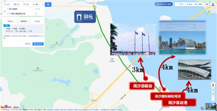 距离项目约3公里处,是与项目属于同品牌开发商打造的南沙游艇会,也是中国内地获英国游艇码头协会颁发“五金锚奖”的游艇会。约4公里处,是南沙客运港以及总投资约150亿元的邮轮母港,这里集大型邮轮码头、航站楼、主题酒店、商务及高端品牌免税城于一体,为项目提供了高端休闲配套。