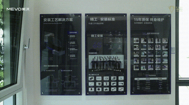 工法墙作为高效营销载体,将产品转化为“会说话”的成交型陈设。该区域集中展示畅销产品样角,深度解构创新技术与高端配置,并呈现美沃「精工安装标准」——55道工序,精益求精,提供全流程服务、全星级体验,让观者“所见即所得”。
