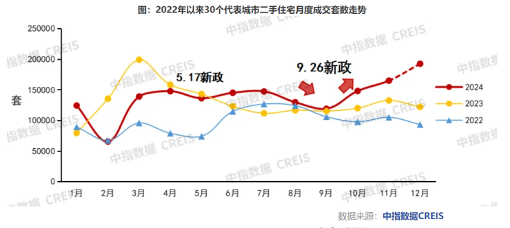 值得一提的是,2024年除深圳、成都外还,还有多个城市二手房成交量创下新高。如上海房地产市场2024年在历经了限购、贷款、税费等多方面重大调整,新政效果在逐月的二手房成交数据中充分体现出来,去年全年上海二手房成交约24.27万套,创下近3年来新高。