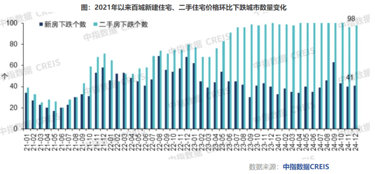 “2024年以来,房价仍处于持续下行通道,前三季度降幅高位徘徊,直至去年9月26日中央政治局会议提出‘要促进房地产市场止跌回稳’,定调政策转向,市场开始出现积极变化。”麟评居住大数据研究院分析指出,二手住宅价格跌幅在四季度取得了阶段性收窄,年内房价降势大致呈现“前陡后稳”特征。