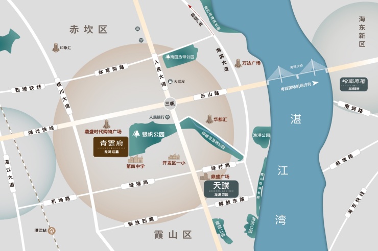 与此同时,银帆公园板块更是湛江圈层集中所在,政府机构聚集、圈层集中、高端小区林立,银帆公园主城高端居住区正在成型。