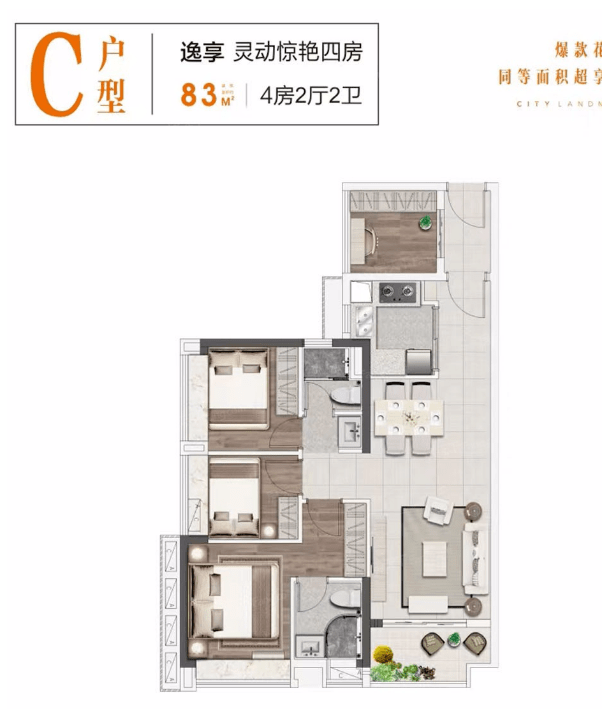 当前四房主流面积段是110-140平,在房价高企的当下让许多人望而却步。为了满足刚需的购房需求,开发商也是内卷加剧,推出紧凑型小面积四房,让预算有限的购房者即节省了“票子”又能一步到位!
