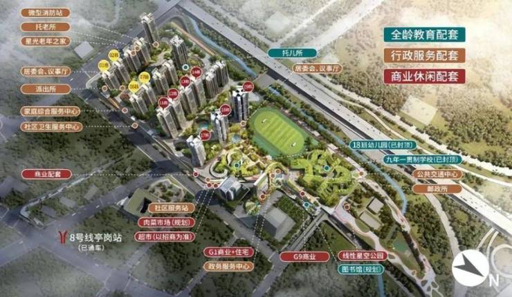 中建凤榕台位于增城科教城南侧,距离21号线凤岗站约600米,可乘坐快车线直达科学城、珠江新城等核心区。商业方面,项目周边已有多个成熟小区,底商基本完善;此外还自带地下商业体“21·芯天地”以及约3600㎡商业街,以满足日常生活需求。