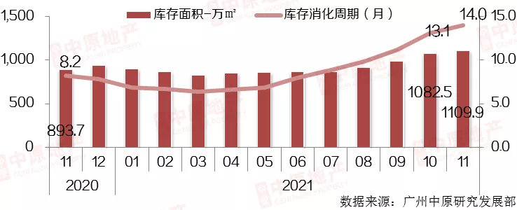 截至11月末,全市库存量1109.9万㎡,去化周期14个月。