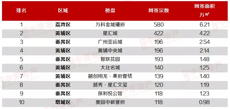 由于9月底以来推出过千套单位,荔湾万科金域曦府、黄埔星汇城网签宗数分别达到580、422宗,大幅抛离其他热盘。