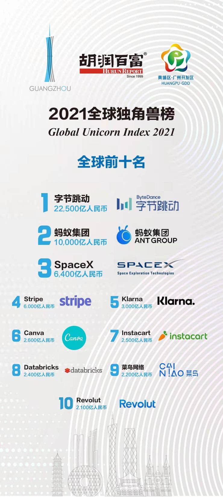 12月20日上午,《2021全球独角兽榜》在广州向全球排名前列。