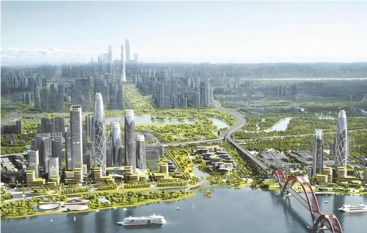 目标之一是标志性,即新城市轴线地标场所集群;目标之二是未来感,即未来创新活力的产业中心;目标之三是烟火气,即在地生活场景的展示窗口。