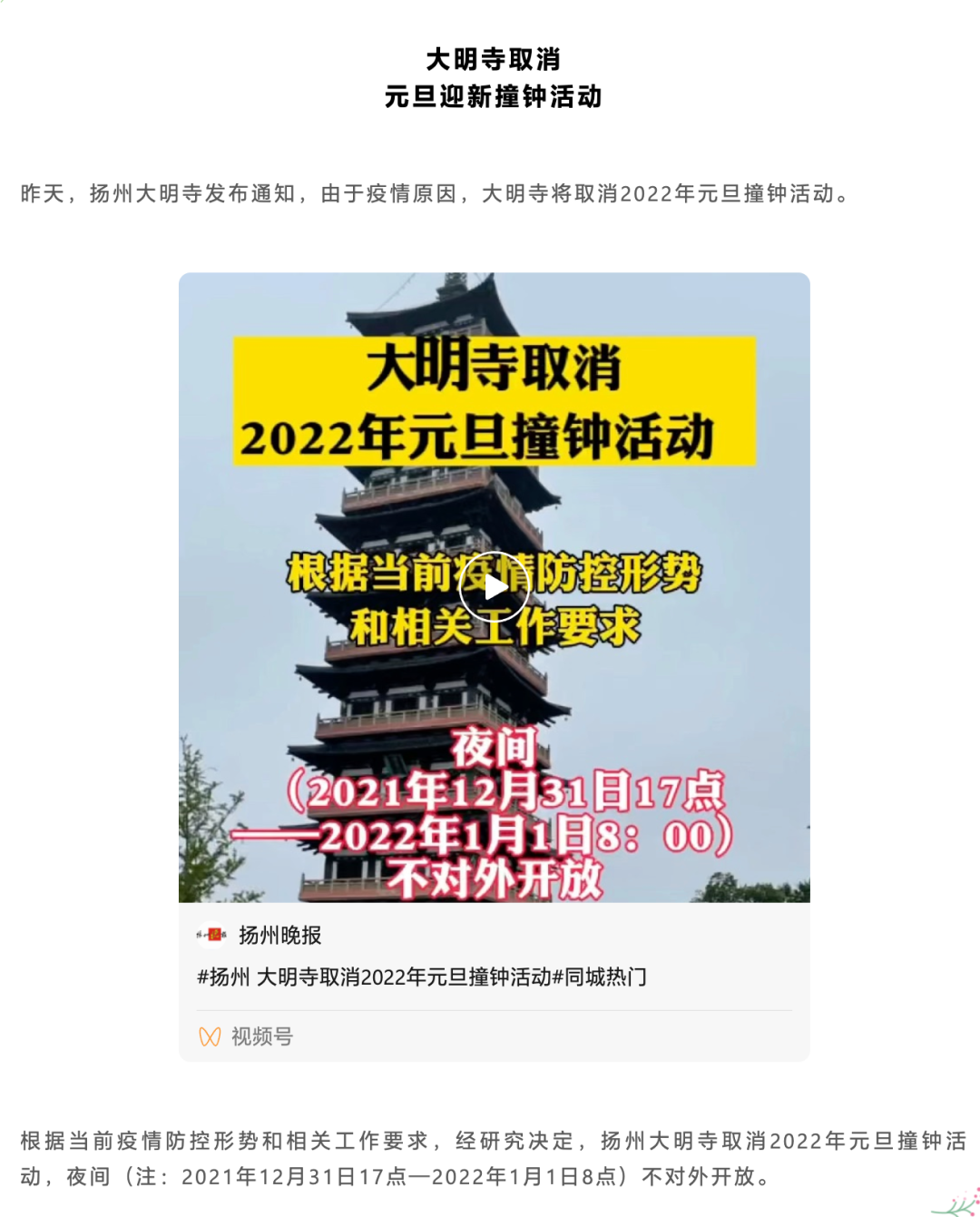 近日,全国多地发布紧急通知,宣布不举办或取消跨年活动。