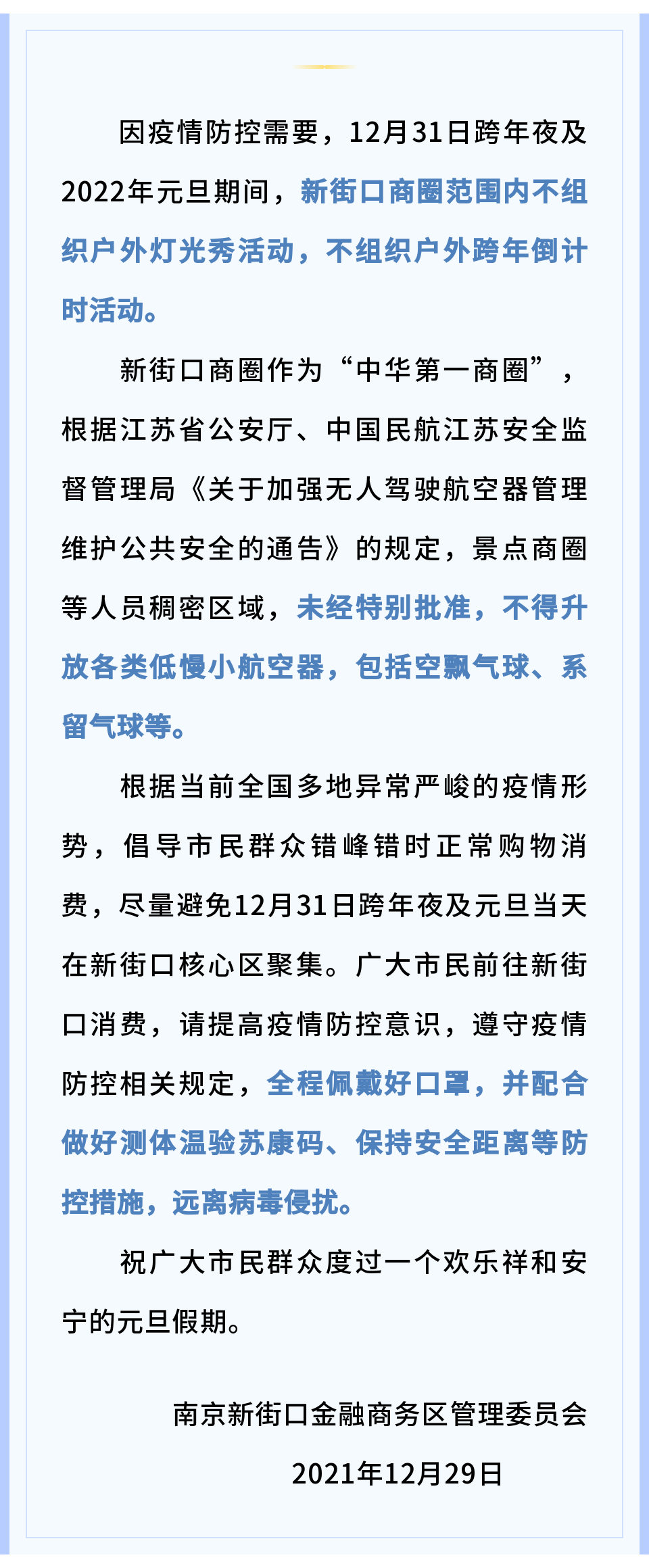 此外,上海市绿化市容局12月29日上午发布提示,今年12月31日晚,上海无零点倒计时活动。另外,2022年元旦期间,上海黄浦江核心区没有光影秀展演。