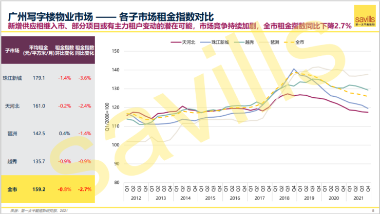 排名前列太平戴维斯:供应压力持续,广州写字楼租金降至近七年较低