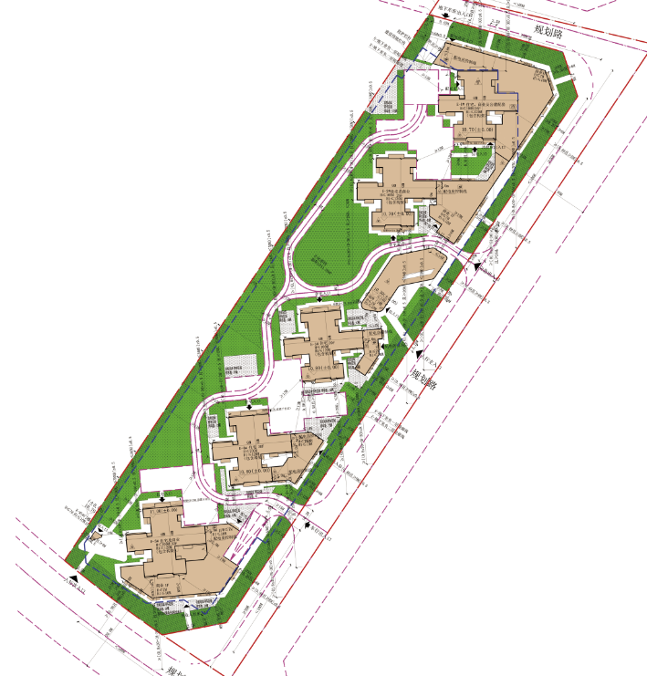 规划图显示,项目用地面积28090㎡,容积率≤3.7,总建筑密度≤28%,绿地率≥35%。