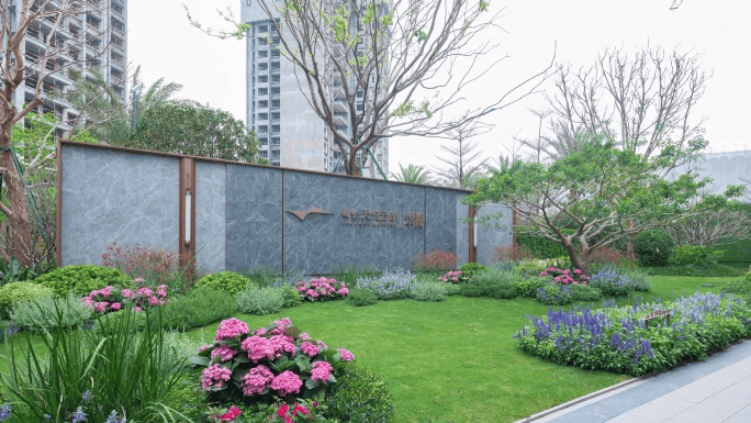 脚下星河灰仿石砖铺装搭配长效花境,提升归家尊崇体验。构建起归家的第一重仪式感。