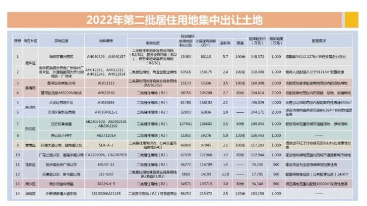 2022年广州第二轮集中供地,将于7月18日开拍。