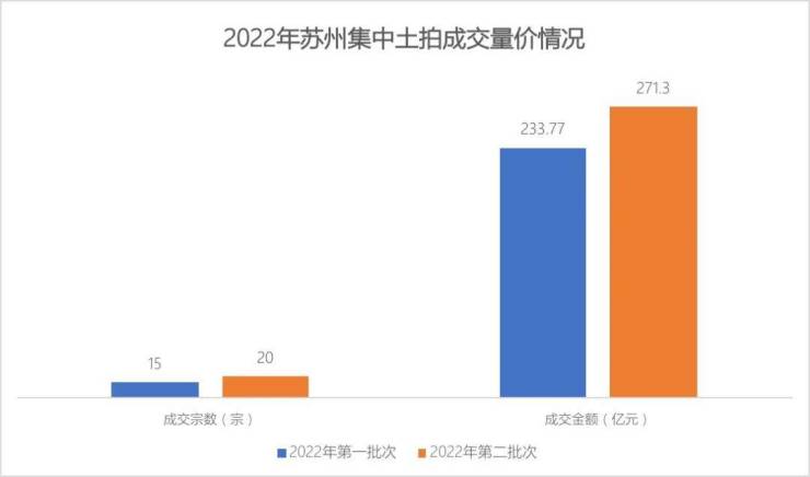 本轮土拍共成交20宗地块,较上一轮增加了5宗,最终成交额高达271.3亿元,较今年排名前列轮上升16.05%。(注:苏州2022年第二轮集中供地初始挂牌22宗地块,其中2宗因规划调整终止出让,3宗为定向安置房用地。)