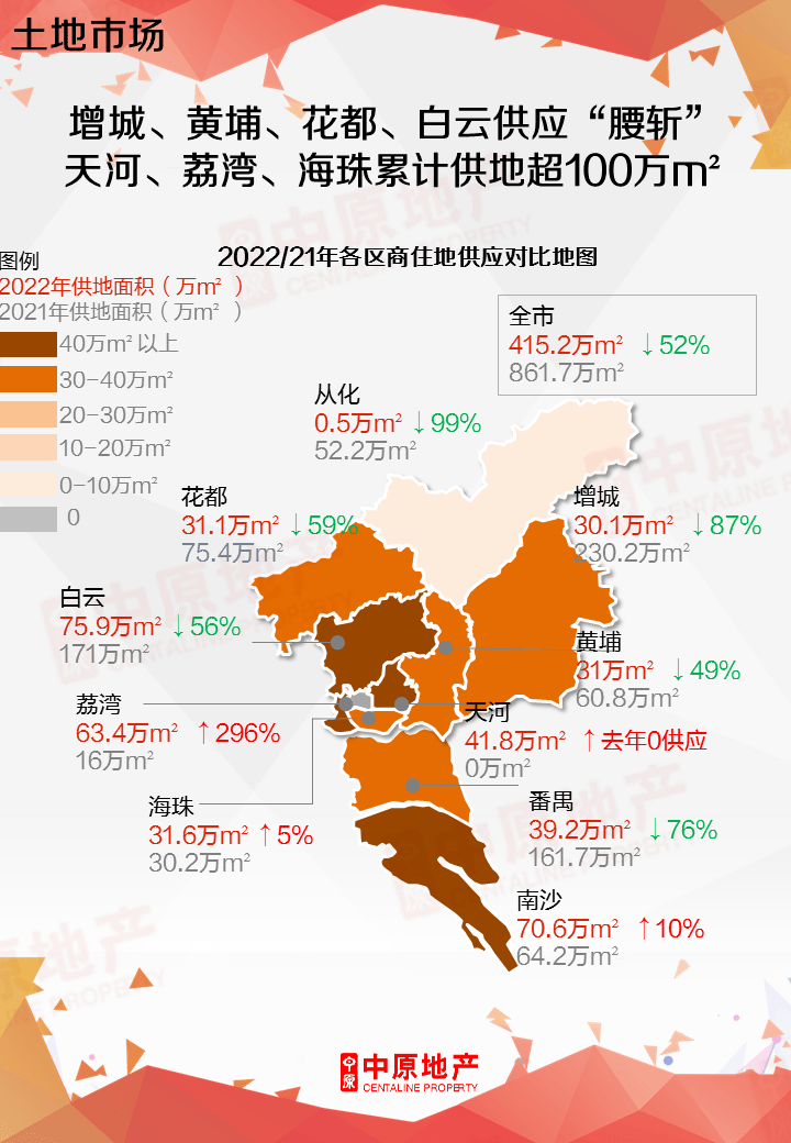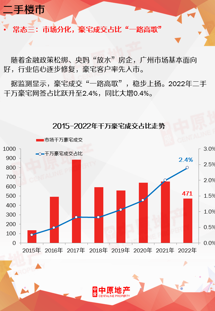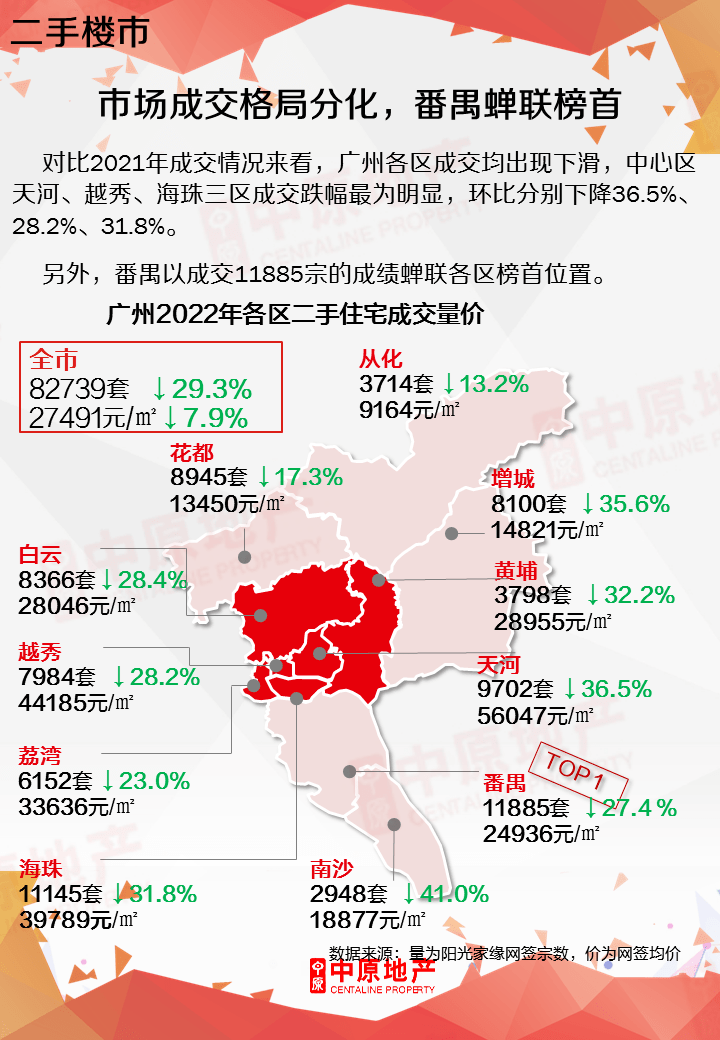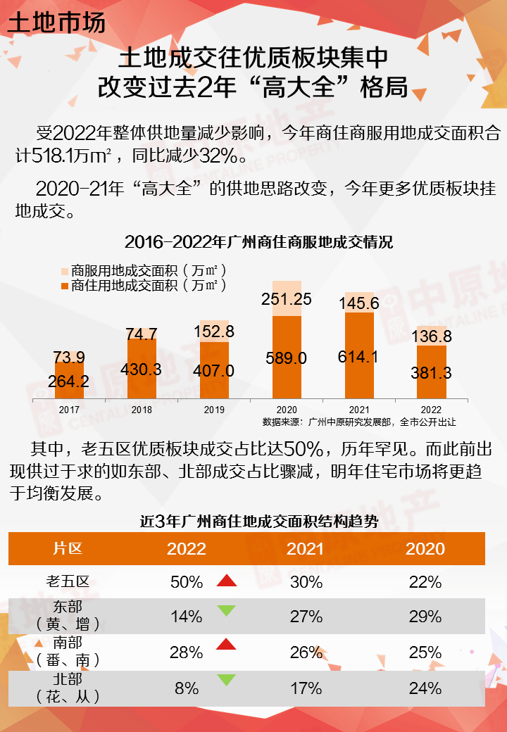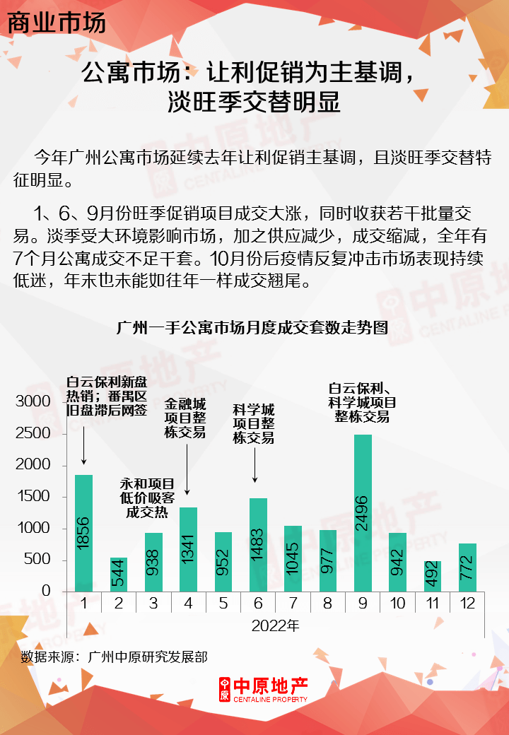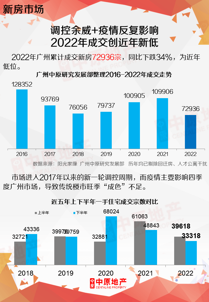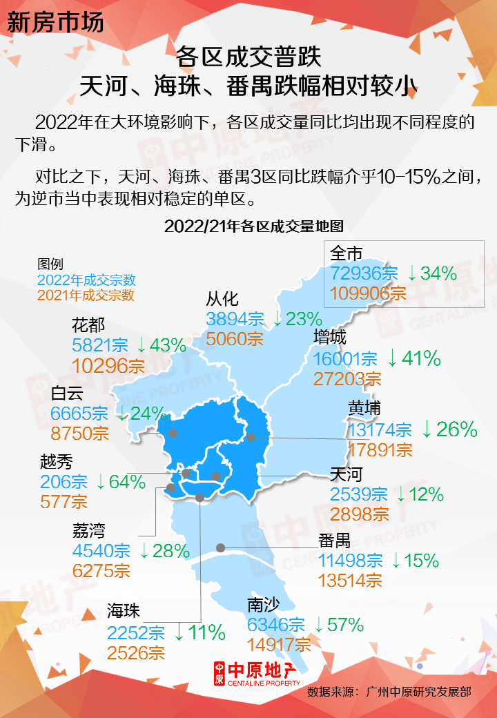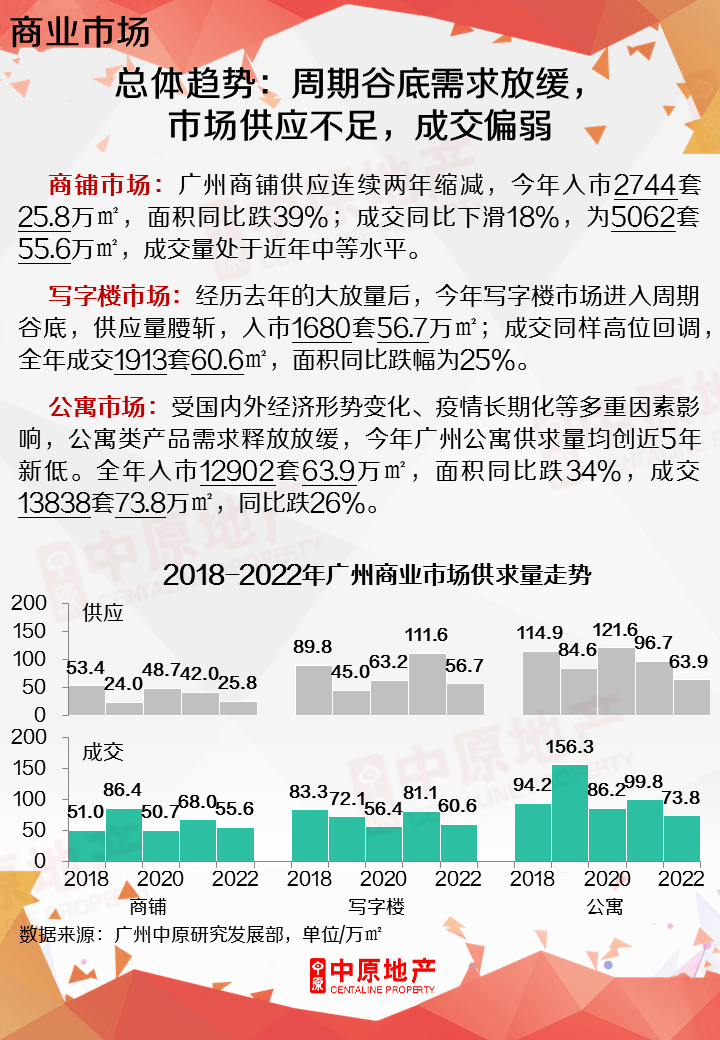 2022年,广州在 “三道红线”威力持续发酵叠加疫情反复影响之下,各物业成交均受到一定冲击。