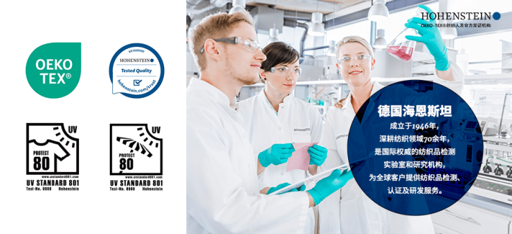 作为OEKO-TEX创始人及官方发证机构,德国海恩斯坦可根据OEKO-TEX标准对企业的产品进行检测并颁发oeko-tex100证书。其已在纺织领域从事检测认证服务超过70余年,并于2007年在上海成立中国总部,之后又在宁波、福州、广州、青岛成立办事处,能够更好的帮助中国服装企业成功将产品推向国际市场。