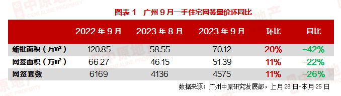 9月广州新房网签4575宗,环比上升11%,比去年同期成交下跌26%。