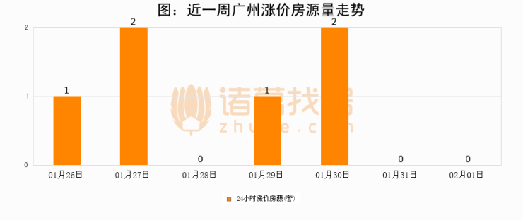 根据诸葛找房数据显示,广州24小时涨价房源量为0套,较01月31日持平。