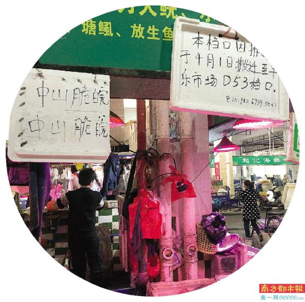 已找好下家的档主并不少,他们都将迁移目的地写在纸板或泡沫箱盖上,挂在档口让老客户们知晓。近的迁到附近几个市场,远的去到天河、增城等地谋生。