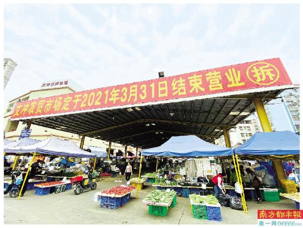 实际上,于文冲-双岗片区的街坊而言,此地“旧改”拆迁的消息早已不胫而走,因为这座老黄埔较大的农贸市场也要在3月底关停——市场多处悬挂的横幅、电子公告显示,文冲农贸市场将整体拆除,所有档主需在3月31日前交还租赁场地,清退离场,市场将在4月9日整体关停围蔽。