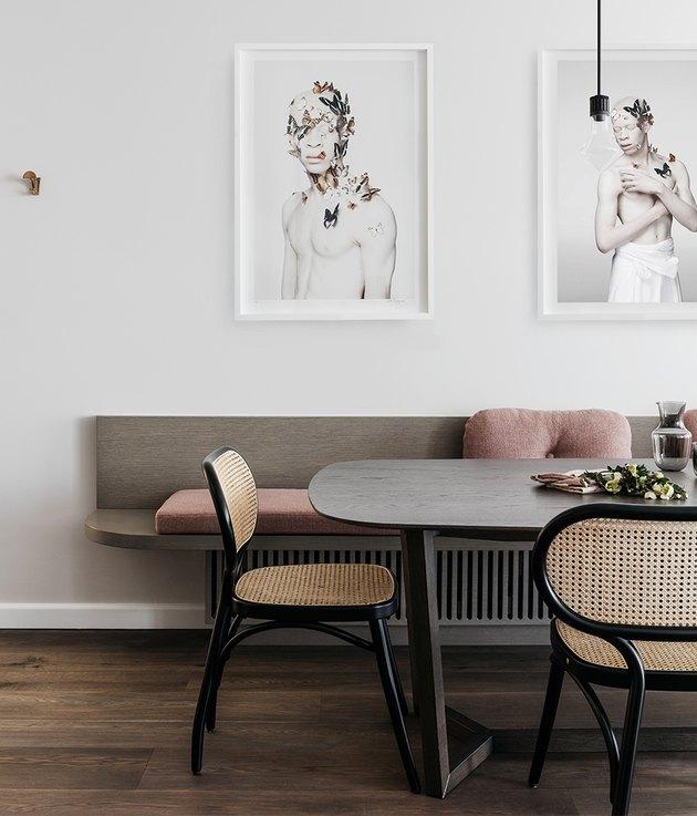 这个低调的餐饮区是无可挑剔的风格,虽然不是过于珍贵。在这个明亮通风的工业空间中设置基调的关键是干净的线条和自然纹理的混合,然后在艺术作品、照明和其他个人接触中分层。