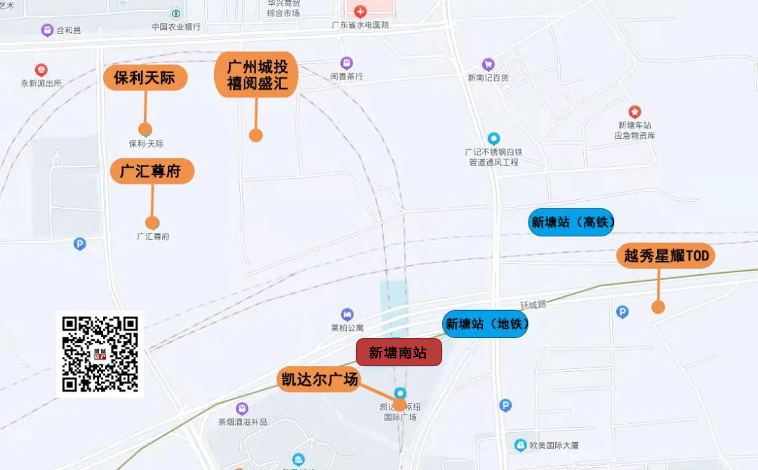 1.5公里范围内,一手项目有保利天际、广汇尊府、广州城投·禧阅盛汇、凯达尔、越秀·星耀TOD等。