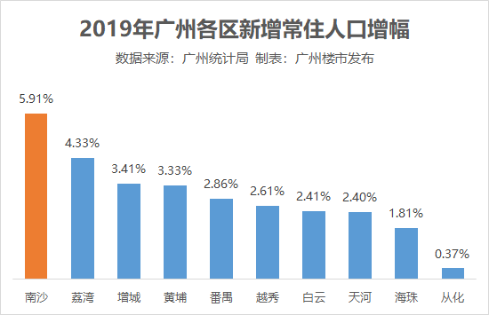 在经济大步迈进的同时,南沙也迎来人口红利,5年间常住人口增加了近13万,一跃成为广州人口增幅较大的区。