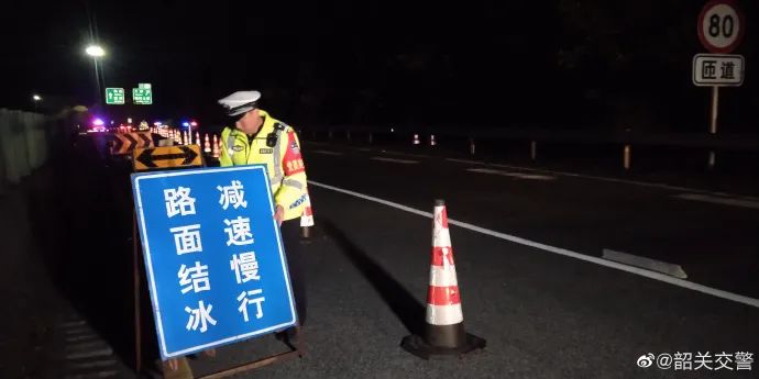 为应对低温寒潮,负责管辖京珠北高速、乐广高速北段的高速交警、京珠北分公司已启动抗冰雪预警响应,并通过沿线情报板、警示牌发布“路面结冰,谨慎驾驶”提醒信息。交通管制实施后,韶关高速交警部门组织警力加强乐广高速公路路面巡查管控,充分发挥恶劣天气交通预警处置平台作用,及时处置各类突发情况;联合路政部门做好高寒路段、桥面的测温工作,及时掌握路面气温和车流变化。