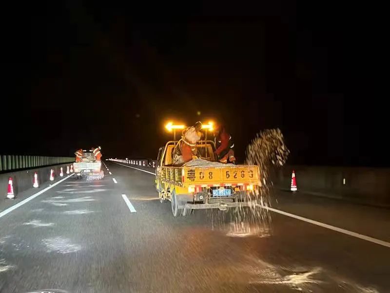 12月27日上午8点,二广高速九嶷山路段路面温度为-1℃,竹盖山路段路面温度为2.5℃,目前全线交通正常。为预防道路结冰,自26日19点至27日上午8点,二广高速路政、养护会同高速交警,在九嶷山至丰阳路段双向22公里,实施预防性撒布融雪剂措施2次;在太保至连山路段双向20公里,实施预防性撒布融雪剂措施1次,全力保障过往司乘安全。截至27日9点30分,二广高速在南行九嶷山至丰阳路段11公里,通过压缩车道渠化交通,现场第二车道可通行。请广大车主留意沿线情报板提示信息,出行前密切关注天气情况,经过管制路段请听从现场交通人员指挥。如需帮助,请拨打二广高速24小时求助电话。