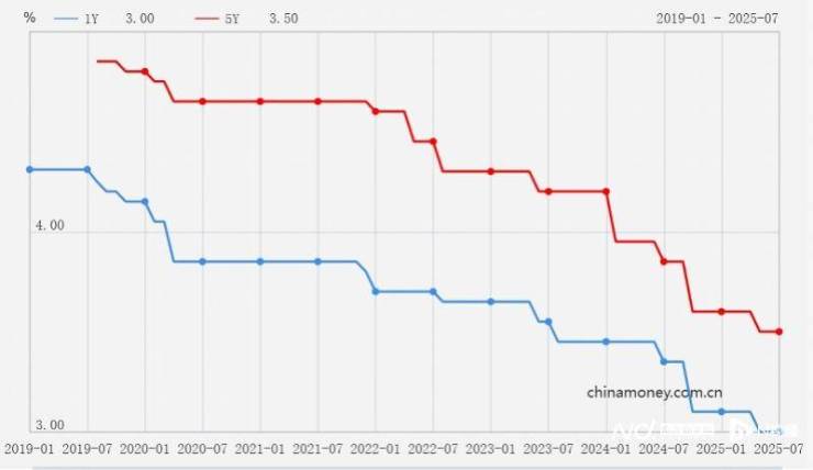 中国人民银行授权全国银行间同业拆借中心公布,2025年7月21日贷款市场报价利率(LPR)为:1年期LPR为3.0%,5年期以上LPR为3.5%,均与前值保持一致。