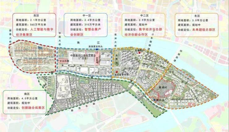 从此前的规划来看,琶洲分为西区、中一区、中二区、东区、南区五个板块,前面四个滨江板块,主要用来搞产业,南区不靠江,之前规划了不少居住用地。