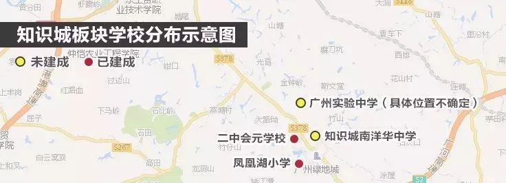 知识城:凤凰湖小学、二中会元学校(公办小学+初中)已开学、广州实验中学、知识城南洋华中学则定于2019年9月招生。