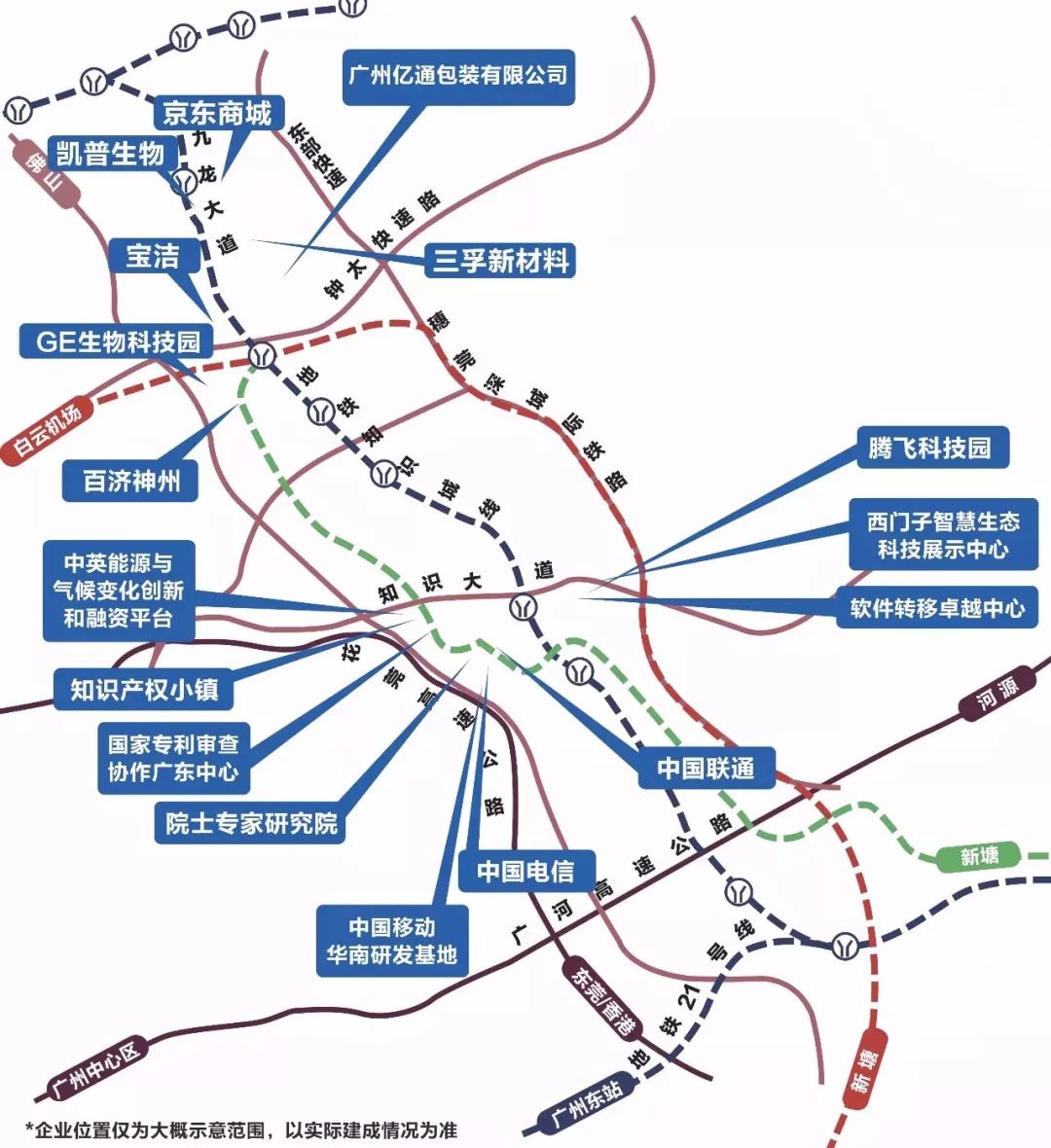 知识城:知识城已累计注册企业近900家,注册资本近1000亿元,包括分众传媒、奥飞娱乐、中国动漫集团、百济神州等产业龙头。