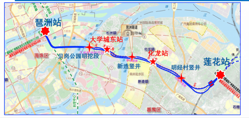 该工程在琶洲站与广佛环线衔接,在莲花站与佛莞城际衔接,是连接珠三角城际铁路广佛环线、佛莞线、穗莞深线的纽带,也是城际铁路引入广州市中心城区的重要线路的重点项目。