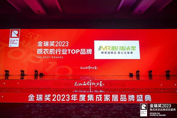在2023品牌之夜—金瑞奖集成家居品牌颁奖盛典上,明日荣获中国晾晒品牌之声“2023 年度晾衣机行业TOP品牌”。