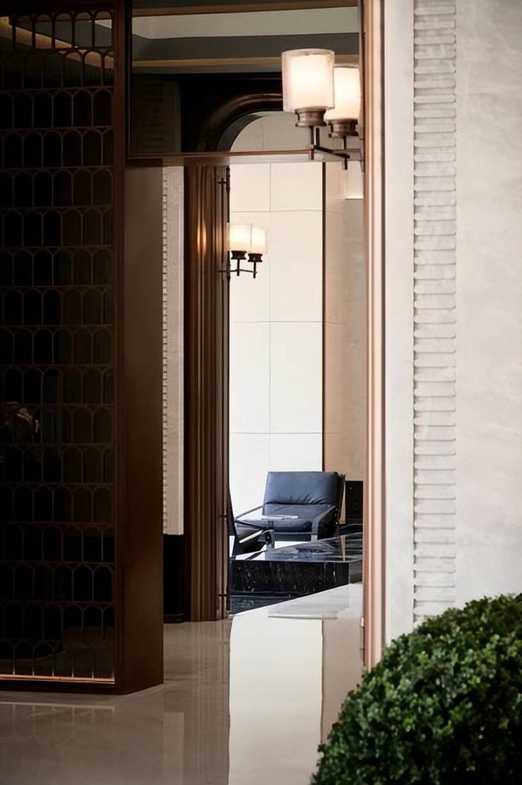 这里没有程式化的绿化点缀,而是以完整的“山、林、水、谷、岛”地貌逻辑,打造出一座可游可赏的自然公园。树木舒展,花草层次丰盈,行走其间,如同漫步于一片被精心打理的野趣森林。更打动人的是无数重合度极低的细节:入口处叠水与酒店式落客区虚实相映,将喧嚣温柔滤净,安缦式的隐奢与宁静,从归家第一刻便已奠定。