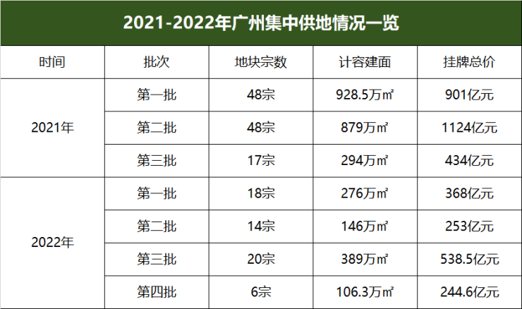 这一次,广州拿出了6宗涉宅地,是2022年四轮集中供地中供地宗数最少的一批次。
